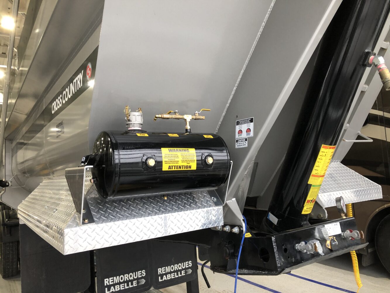 Réservoir à calcium installé à l’avant de la remorque